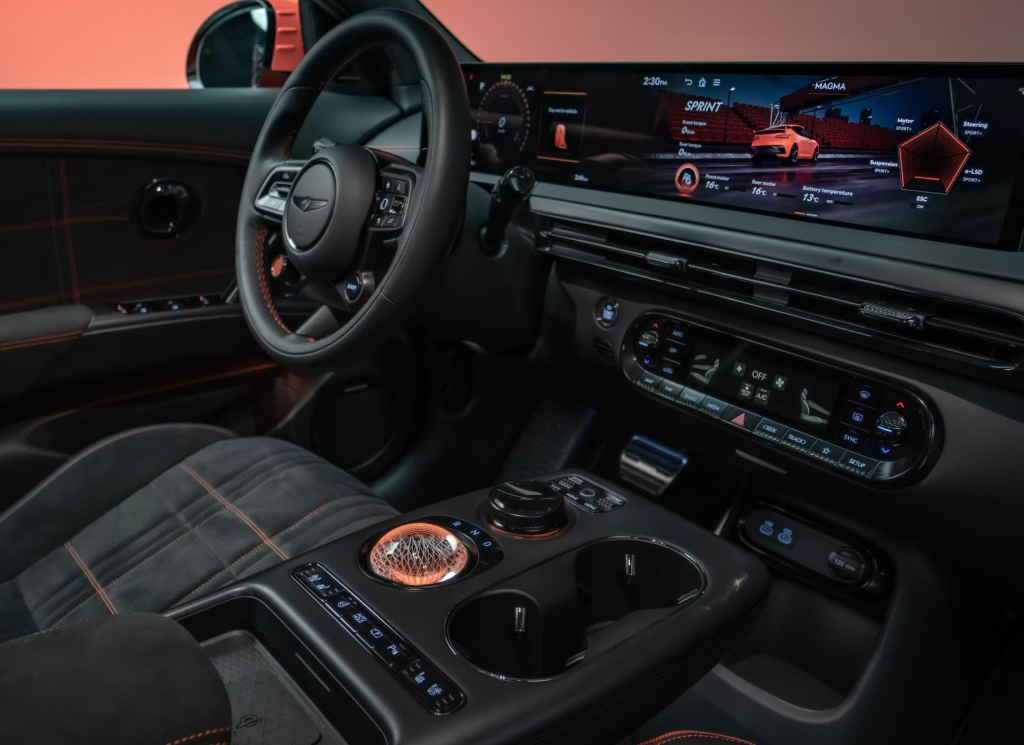 ה-GV60 Magma פותחה סביב תפיסת ה-Athletic Elegance המוכרת של המותג, אך כאן היא מקבלת פרשנות אגרסיבית יותר המותאמת לביצועים גבוהים. המרכב עבר הרחבה של 50 מ"מ במפסק הגלגלים והנמכה של 20 מ"מ במרווח הגחון, מה שמביא לשיפור ניכר במרכז הכובד וביציבות הדינמית במהירויות גבוהות.