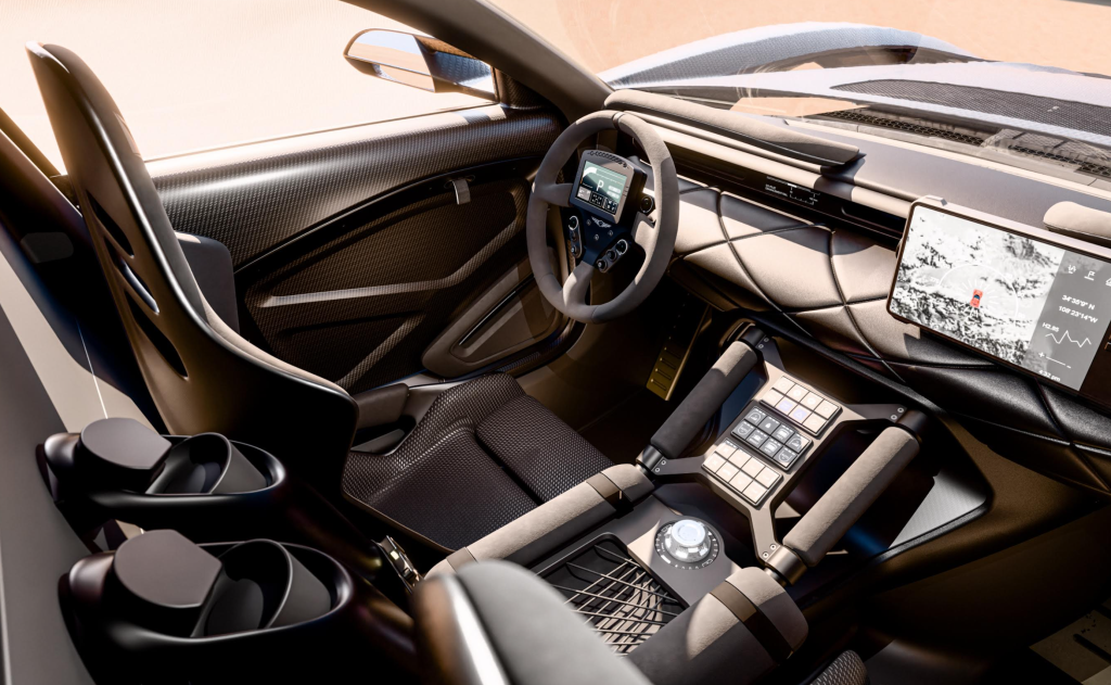 לוח המחוונים משולב בגלגל ההגה עצמו, כך שהנהג אינו נדרש להסיט את מבטו מהשטח. מסך תצוגה ייחודי נע על מסילה ויכול לעבור בין מצב נהיגה סולו, שבו הוא ממורכז מול הנהג, לבין מצב נהג ונווט, שבו הוא נוטה לעבר הנוסע לצורך ניווט וניהול המסלול. ידיות אחיזה בולטות, מושבים ארגונומיים ומערכות תקשורת מתקדמות משלימים סביבת נהיגה מקצועית המותאמת לתנאי קיצון.